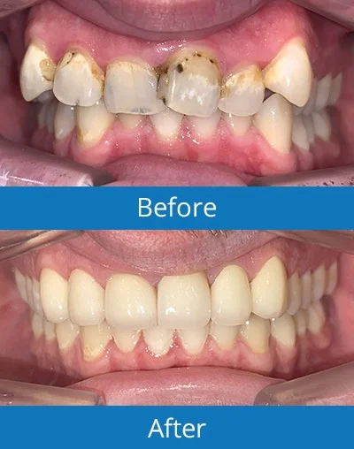 Invisalign and crown treatment – treatment included Invisalign to align the teeth and then upper crowns. All completed in just under 12 months.